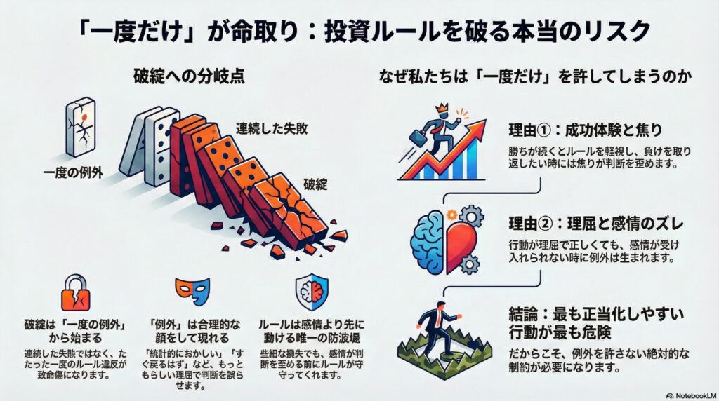 破綻は、ルールを破った 一度の例外 から始まる。